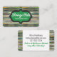 Fun colorful yarny strings background on this business card for a knitter, knitting or crochet crafts, or homespun yarn, in green and yellow tones.