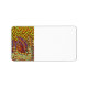 An abstract drawing reminiscent of loosely knitted or crocheted blankets, done in mostly earthy tones. A football/eye shaped area of blue and reds offsets the yellow and green scribbles around it.