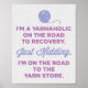"I'm A Yarnaholic On The Road To Recovery. Just Kidding. I'm On The Road To The Yarn Store." Poster featuring a modern design with decidedly girly colors and a ball of yarn. This is a fun print for all the yarnaholics of the world.
