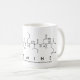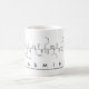 Yasmine spelled out in amino acids as Y A S M I N E (Tyrosine Alanine Serine Methionine Isoleucine Asparagine Glutamic acid) on a mug for the scientist in you.
