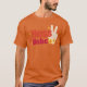 My 11 yo wore adult XL (5’7” 165#). The 8yo is small framed. She wore adult small and tied it in the back. Grandma wore adult large with long sleeve shirt underneath. Tall girl adult medium. Dark haired male adult large. Good quality dark Heather gray, Gildan brand shirt. -it was next up from basic choice and cost about $20 per shirt. Not too thick or thin. Washed and dried well, no major shrinkage. Not see-through. Can wear a bra under it fine. Screen print is just as shown and well done, front and back.