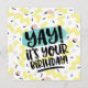 Cool birthday card with the funny text: Yay, it's your birthday! With nineties memphis style shapes and graffiti letters for cool teenage girls.