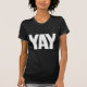 The material is a great quality that is hard to find with most tee shirts. Fabric was not see-through or thin at all, but was also very soft and comfortable. The shirt description states that it runs a little small, so I sized up one size for a perfect fit! I would definitely buy this type of tee shirt again because I love the fit and high quality fabric that I cannot find anywhere else. The printing was perfect and just as pictured. Loved the cute quote and really enjoy the tee in both the quality and design. I love quirky typography designs and funny quotes and I am extremely pleased with the overall quality and value I get at Zazzle!