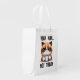 I own a lot of reusable grocery bags, but this one holds its box shape and simply stands up on its own even if there is nothing in it. Its stiffer than your regular reusable bag too, and the material is water resistant. I poured water on the exterior and it didn't penetrate inside to the other side. I'm buying a couple more. Wish I knew how durable these bags were or I would have purchased a few more with my initial order. I also like how it folds and buttons up when not in use, making it easy to put into a handbag or luggage. I haven't used this bag yet, as I purchased it for travel use, like when you're at the airport and need to small sturdy bag to place any airport purchases in, like food, souvenirs etc. I can tell you when you first see this bag, it looks very cheap, but after closer inspection of the material and the seams its a very sturdy reusable bag. I tested it out by putting some really heavy objects inside and I could not observe any stress to the bag at all. Another thing I like about it, is the fact the medium size that this is makes it easy to just carry it in your hand without the bottom of the bag scraping the ground, like most other bags do when you're short. That alone, deserves 5 stars. I just wish there were more colors to choose from! The PDX Airport Carpet printing looks just like the photo, and using this bag during travel might be a conversation piece when/if a native from Oregon happens to see it.