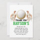 Show your appreciation in style with this "Year Down, Golf On!" 1st birthday thank you card. Featuring a fun golf theme, this personalized card is perfect for thanking guests for celebrating your little golfer’s big day. Customize it with a special message and party details for a personal touch. It’s a hole-in-one way to say thank you! ⛳🎉