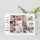 Year in review "Oh deer what a year" twelve photo collage purple Holiday Card. A modern Christmas holiday card that includes a photo collage of twelve photos with gray frame one for each month and the message: "Oh deer, what a year" in purple with a gray deer instead of the word dear. The back features a pattern of a white deer on purple. All photos except one are of Photography © Storytree Studios, Stanford, CA