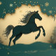 Majestic forest silhouette of a rearing horse with warm golden tones, styled for Year of the Horse 2026. An elegant New Year greeting for nature lovers and equestrian gifts. Blank layout with editable fields inside for your message, name, city, and year. Card