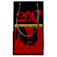 Small gift bag with a black rooster on red background with decorative lettering. Don't forget the whole collection: greeting card, postcard, postage, stickers...For Chinese new Year2017 or birthday. --------- People born within these date ranges can be said to have been born in the "Year of the Rooster", while also bearing the following elemental sign: