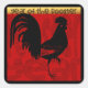 Modern and traditional illustration with a black silhouette of a Rooster and ornate red lettering as background + Year of the Rooster onto a small golden band. Design on square sticker. Available with another design with the same lettering. Matching greeting card, postage, red envelopes and lot of other products for New Year and Birthday (people born in Rooster year)... -------- "The Rooster (simplified Chinese: 鸡; traditional Chinese: 雞/鷄) is one of the 12-year cycle of animals which appear in the Chinese zodiac related to the Chinese calendar. The Year of the Rooster is represented by the Earthly Branch character 酉. The name is also translated into English as Chicken. Rooster is the only bird included in the Chinese zodiac. People born within these date ranges can be said to have been born in the "Year of the Rooster", while also bearing the following elemental sign:
