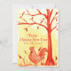 Celebrate with a party in honor of the Chinese New Year ~ Year of the Rooster ~ with this invitation decorated with a whimsical rooster near a tree painted in watercolor in shades of bright red and golden yellow.