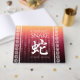 Celebrate the Chinese new year with this stylish guest book, which features the Chinese letterform for the Snake, the sixth sign/animal in the Eastern zodiac, and traditional celebratory Chinese greetings, rendered on a gold-to-red gradient background.