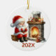 A Round Ceramic Yearly Santa By The Fireplace Christmas Tree Ornament
