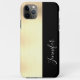 Personalize your name in white script on a black stripe with yellow gold background for a contemporary and dynamic look. A modern style that will dress-up your phone case perfectly. Makes a great gift.