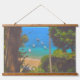 This Wood-Topped Wall Tapestry features vivid colors, crisp lines, and a rustic open wooden frame. While the beautiful, stained wood adds a unique feel to each piece, the vibrancy of the print can transform any wall into a visual masterpiece.