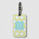 Yellow and Aqua Honeycomb Pattern Monogrammed Luggage Tag