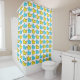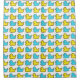 Cute rows of blue and yellow ducks with polka dot patterns on cheery shower curtain.