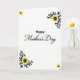 Designed with a bright white background, the card centers attention on a large “Happy Mother’s Day” message that feels both modern and tender ❤️. The word “Happy” sits above in a thick, simple letter style, while “Mother’s Day” beneath it uses flowing connected lettering that adds a gentle, affectionate touch. The text is placed in the middle of the card in dark ink, making it easy to read at a glance. In the top-left and bottom-right corners, a single yellow flower with a dark center adds a sunny, caring note, like a small nod from someone close 🌼. The top-right and bottom-left corners mirror each other with fuller floral clusters, where curled black decorative lines wrap around small blooms. Those clustered flowers mix soft yellow, light purple, and sky blue petals, each with a darker center that gives the arrangement depth. Fine black curls and leaf-like shapes trace around the corner bouquets, framing the central words without crowding them.