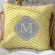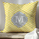 Yellow and Gray Chevron Monogrammed Throw Pillow