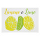 Pretty and delicious design is perfect for your lemon or lime themed home decor. Design features a row of citrus fruits. There is a half lemon, a lime wedge and a lemon slice. Above the row of fruits is text in yellow and green font that says Limone e Lime, which is Italian for Lemon and Lime. The background for the design is a clean, solid white for a simple home decor choice.
