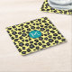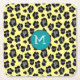 Yellow and Grey Leopard Print Monogram Square Paper Coaster