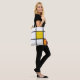 Freshen up your summer wardrobe with this Mondrian style tote bag featuring orange and yellow geometric squares and bold black stripes. This design is minimalistic and modern, and it will complement a variety of summer outfits.