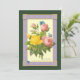 Antique reproduction of pink and yellow rose flowers botanical artwork by famous artist Pierre Redoute with blue butterflies. The flowers are listed on the artwork; Persian yellow roses (rosa Lutea) and pink tea roses (rosa indica). Framed with elements from antique manuscripts.