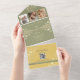 Introducing our vintage-inspired, chic, and romantic all-in-one spring wedding invitation, beautifully designed in soft yellow and sage green hues. Accentuated with delicate faux gold flowers, this invitation exudes timeless romance and refined elegance. Celebrate your unique love story with a design as unforgettable as your special day. Personalize it with up to three photos of the couple, and enjoy the convenience of a QR code for seamless RSVPs and easy access to all wedding details. No envelope required—simply add your return address, seal it, and send with love and joy!