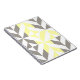A trendy abstract, geometric cubed pattern in berry yellow and silver gray.