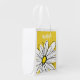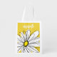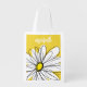 Yellow and White Whimsical Daisy with Custom Text Reusable Grocery Bag