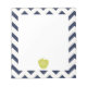 A gift for teachers featuring an illustration of a yellow apple over a navy chevron background.