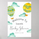 Yellow Aqua Hot Air Balloons Baby Shower Welcome Poster