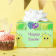 Festive Easter wrapping paper in your choice of sizes. Cute yellow baby chick hatched from its blue green striped egg with the look of glitter on its wings, head and striped egg sitting in green Easter basket grass by a green striped egg, blue polka dotted egg and pretty purple egg with white and green flowers and Happy Easter written in purple text on a light green background. Transparency checked via options wheel, turn off if you'd like design with a white background via Customize It. Wrap all your special gifts with unique holiday wrapping paper. Leave wording as is, or personalize. Original Graphic Artwork by TamiraZDesigns. ww.zazzle.com/tamirazdesigns