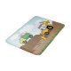 This construction themed bathmat features a design perfect for a little boy. It offers a backhoe with a front end loader digging up the letters of the child's name. The dump truck is loaded with more letters of the alphabet. The design is accented with several hills of dirt, green grass and blue sky and clouds.