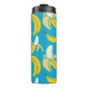 Vintage yellow fresh fruit tropical banana seamless pattern in blue background
