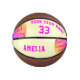 Yellow Basket Ball Girl Player Name Team Number Mini Basketball. The design has two vivid colorful basketballs on the left and the right side and yellow background. Personalize it with your team name, number and your name. This custom and personalized basketball is a perfect gift for a basketball player, teammates, coach,... A great keepsake to remember your favorite sport.