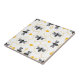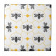 This design features a bees and honeycomb with simple shapes and black outlines on a white background. Yellow accents add a touch of color to the symmetrical, minimalistic design. The ink drawing of bees incorporates geometric elements and Art Deco inspiration without shading.