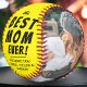 Yellow Best Mom Ever 2 Photo Collage Softball. The best mom ever 2-photo template softball. Personalize it with 2 favorite photos and your names. You can change any text on the softball or erase it. This modern custom and personalized softball is a perfect gift for a mother for a Mother`s Day, birthday or Christmas and is a lovely sports photo keepsake.