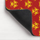 Red mousepad with a repeating biohazard symbol pattern in bright yellow and editable text field for easy customization with your name or message.