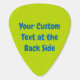 I purchased these picks as a gift for my husband. He absolutely loved them! He usually uses the .73mm Dunlops but these were a close .71mm thickness and he doesn't seem to mind. I had ordered ten of these personalized picks but only one arrived (on time, before Christmas)... I thought they would give me a hard time since I couldn't "prove" only one was sent, but they honored the mistake and sent the other nine (all-be-it a month later)... They are nice and smooth around the edges. I would definitely buy these again! The print came out great - very clear!