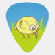 A cute and funny yellow bird cartoon on grass and sky background. Custom text.