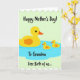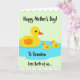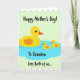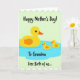 This card shows a large yellow water bird on the left gliding gently ahead of two smaller matching birds, their close spacing suggesting a sweet, caring bond ❤️. Each bird has a bright yellow body, an orange beak, a tiny round black eye, and a small orange oval on the chest, keeping the look simple and friendly. They float together inside a soft, cloud-shaped pool of light blue water centered on the card, as if moving in step like a little family outing. The background is a pale mint green that makes the yellow figures stand out without feeling harsh, and the outlines are crisp and graphic. Across the top, the phrase “Happy Mother’s Day!” appears in thick, hand-drawn black lettering, sitting above the scene like a cheerful banner 🌼. Beneath the birds, “To Grandma” is placed in the same black lettering, centered and tucked close to the blue water shape. Along the bottom, “Free Birth of us...” runs near the lower edge, framed by scalloped white borders at both the top and bottom of the design. The scalloped edging is bright white, forming a decorative trim that contrasts with the mint background and brackets the illustration.