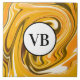 Yellow Black acrylic pour marble add name monogram Ceramic Tile
