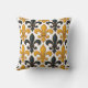 Yellow Black Baroque Fleur-de-lis Pattern Design Throw Pillow