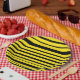 This simple paper plate design features a pattern of yellow and black colored stripes inspired by the coloring of bumble bees. A paper plate like this might make a fun gift for somebody who enjoys beekeeping, or who likes bumble bees. It might also be useful at a party or gathering or some other event having a honey bee theme. [~Z0000315]