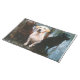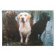 picture of a yellow, black & chocolate lab posing together after a swim at the lake on a placemat