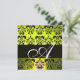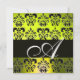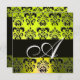 YELLOW BLACK DAMASK MONOGRAM , white Invitation