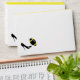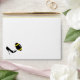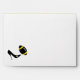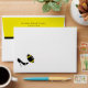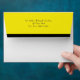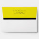 Stylish football theme envelope, done in white, with a yellow back flap, with a black stripe. A solid black lines the inside of the envelope and cute graphics of a black high heel kicking a black and yellow football, decorates the left front corner of the envelope. Return address done in black text, on the back flap, is ready to personalize with your information. Great finishing touch to our black and yellow football themed couple's wedding shower invitations.