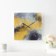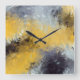 Yellow Black Gray White Abstract Brushstrokes Square Wall Clock