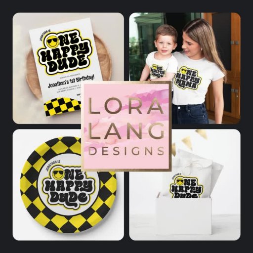 Yellow & Black One Happy Dude Birthday CollectionDesigned by Lora Langowski