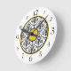 Elegant 8" wall clock with a black & white damask pattern accented with yellow. The numbers are in a fancy size varying pattern to break up the typically uniformity that most clocks display.